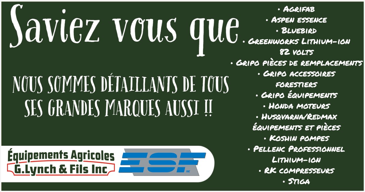 Nous, Équipements Agricoles G. Lynch, desservons une grande partie de l'Estrie.